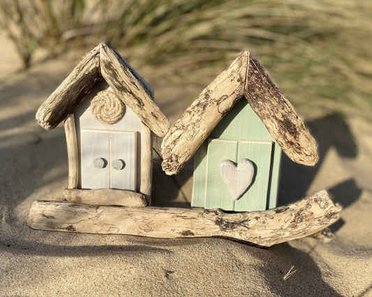 Driftwood beach huts with Fairy lights - double Blue Aqua