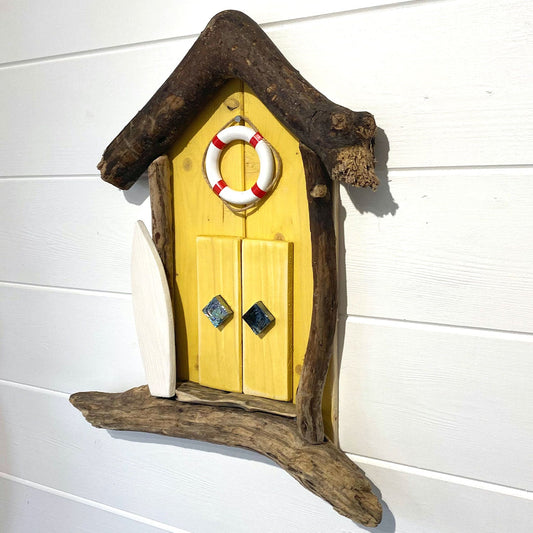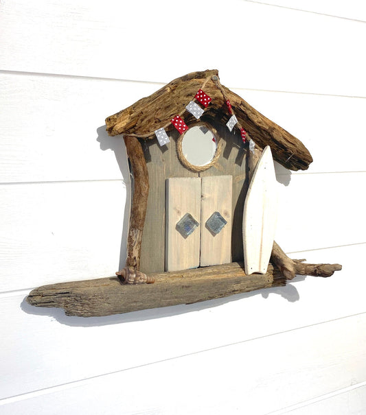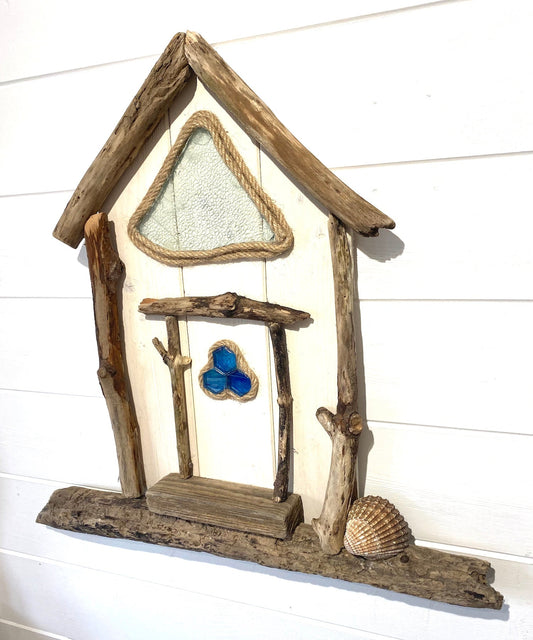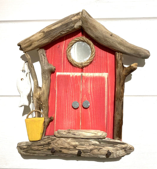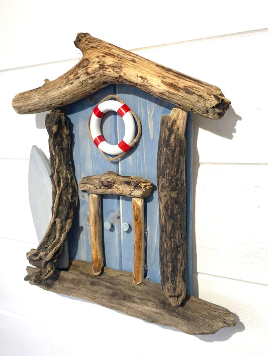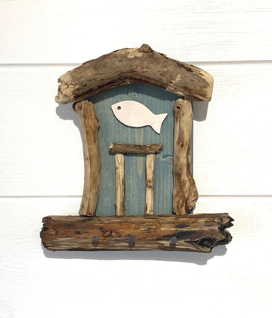 Driftwood Mini Beach Hut With Key Hooks & Fishing Rod