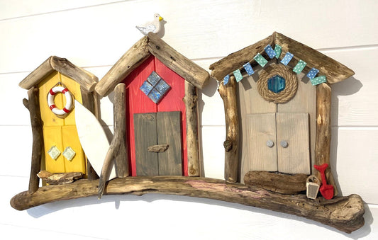 Driftwood Triple Beach Huts - Yellow / Red / Grey